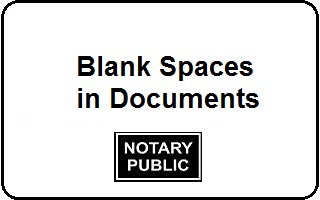 Blank spaces must be filled in, or if not applicable, they should be crossed out or N/A should be written in the blank space. The notary should scan the document for blank spaces and ask the customer to fill them in. The notary must not fill in the blanks for the customer since modifications to the document might be considered as unauthorized practice of law (UPL).