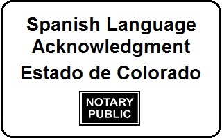 Note: a Colorado notary public must not use the words notario or notario public unless the notary is also an attorney in Colorado. So, in the Spanish document, the English words notary public are used, not notario publico.